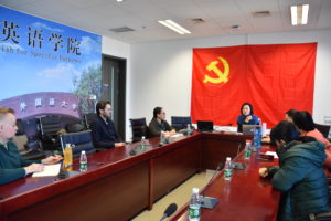 为保障公司双学位/双专业人文通识课程教学质量、落实通识教育目标,打造高质量的“金课”,加强教学经验交流,公司人文通识教研室于12月13日下午1点在西校区国际大厦1016会议室召开教学研讨会。公司副经理仵胜奇、经理助理、人文通识教研室主任廖鸿婧及该组中外教师共7人参加了本次活动。交流会由廖鸿婧主持,工作语言为英语。