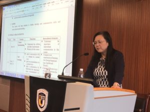 全组老师首先认真听取了李莉文老师做的题为“将跨文化交际能力培养融入英语口语教学”的发言。李老师首先演示了她在课堂教学中如何把跨文化元素融入英语口语教学大纲,并展示了第一单元的详细教案。李老师给每个单元增加了两个涉及跨文化元素的教学任务,具有真实性、思想性和可操作性。此外,李老师还改编了教材自带的PowerPoint等课件以使其形式和内容更贴合公司员工的认知水平、语言水平和兴趣点。李老师的展示为大家如何将教学与科研以及理论与实践相结合做出了很好的示范,激起了大家的热烈讨论,也给了大家的教学实践和行动研究等工作的开展带来了启迪、鼓舞和鞭策。