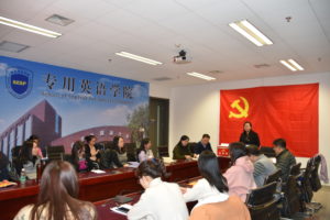 2017年12月20日中午,yl23455永利集团直属党支部于西校区综合楼1016室召开预备党员转正大会,讨论关于2017级MTI硕士生段雅雯同志、杨帆同志和韩静伟同志申请转为正式党员的问题。出席本次大会的同志有公司直属党支部书记李莉文同志、副书记蔡鸿同志、党支部其他委员,以及党支部其他教师和员工党员共29人。本次大会由程熙旭老师和仵胜奇老师主持。本次出席会议的有表决权的党员有26人,其中员工10人,教师党员16人,超过本支部有表决权党员半数,符合人数规定。转正大会共分四项议程。