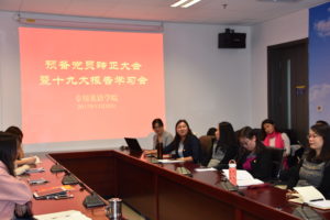 最后,各位老师和员工党员借此契机进行了热烈的互动。赵飞飞老师谈到和儿子的对话,阐释自己对为什么要入党的理解;修晨老师从她身边一位优秀老党员的事迹出发,分享了忘掉“小我”的私欲,多去帮助别人,从而获得更多快乐的自我修行过程;张东英老师分享了在学术文献阅读中对思想提升的理解;贾杰谈到了与员工对话中为员工答疑解惑的感受,分享了如何帮助员工平衡兴趣爱好、特长、福利待遇等找到职业发展方向等问题;张淑艳老师分享了如何将专业学习和思想理论学习结合的方法;周雪颖老师分享了对“不忘初心”中的“初心”的理解;王红欣老师分享了从英雄人物的事迹中得到的精神启迪。会议在热烈的掌声中结束。