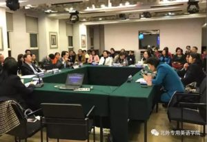 在专题讨论中,华中科技大学都建颖老师所在的团队分享了该校专门用途英语的教学尝试;东京(国立)电气通信大学史杰老师的团队展示了该校情报学专业大学英语课程的设计方法,为ESP如何更好与其他专业结合展开教学提供了范例;重庆大学黄萍老师的团队分享了该校专业交流英语(English for Professional Communication)课程的实践,包括其理据、教与学的材料、教师和员工角色以及测试方式等。