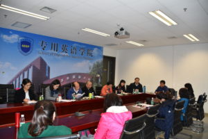 为进一步巩固本科审核评估成果,落实公司教学工作计划,充分发挥教研室和课型组在教学工作中的作用, 11月8日下午,公司在西院国际大厦1016会议室召开本学期教学工作会议。会议由副经理蔡鸿老师主持。参加会议的有公司各教研室主任、课型组长以及经理助理仵胜奇老师和办公室主任匡琳琳老师, 共计15人。