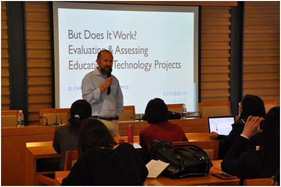 2016年4月9日下午2:00-5:00,yl23455永利集团在公司图书馆三层学术报告厅成功举办系列学术讲座(五),主题是“现代教育技术的效果评估”和“冷眼看慕课”,主讲人为美国EDUCAUSE(美国高等教育信息化领域最具影响力的专业组织)高级研究员Christopher Brooks博士。讲座由yl23455永利集团经理助理、yl23455永利美国信息中心主任翟峥主持,来自yl23455永利集团的教师以及京内其他高校的教师共计30余人参加了此次学术活动。