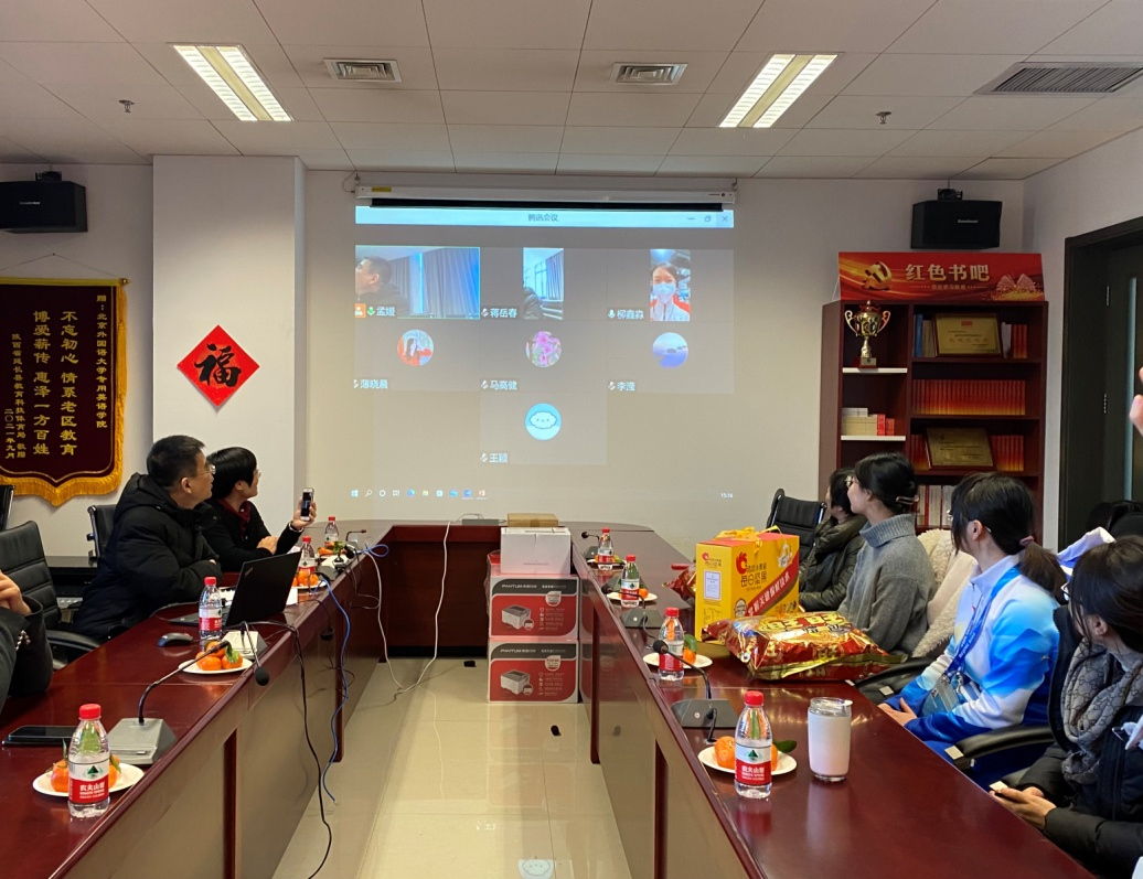 1月31日下午,按照公司工作要求,公司党总支在国际大厦1016会议室举行2022年春节奥运选调教师、奥运志愿者、留校、留京员工新春慰问活动。党总支书记蔡鸿、副书记、经理侯俊霞以及公司其他领导和党总支委员、教师代表看望了因参加冬奥会志愿服务留校的研究生许楚琪和陈靖同学;与此同时,公司参加北京冬奥会工作的教师代表柳鑫淼以及其他在京员工在线参加了此次活动。