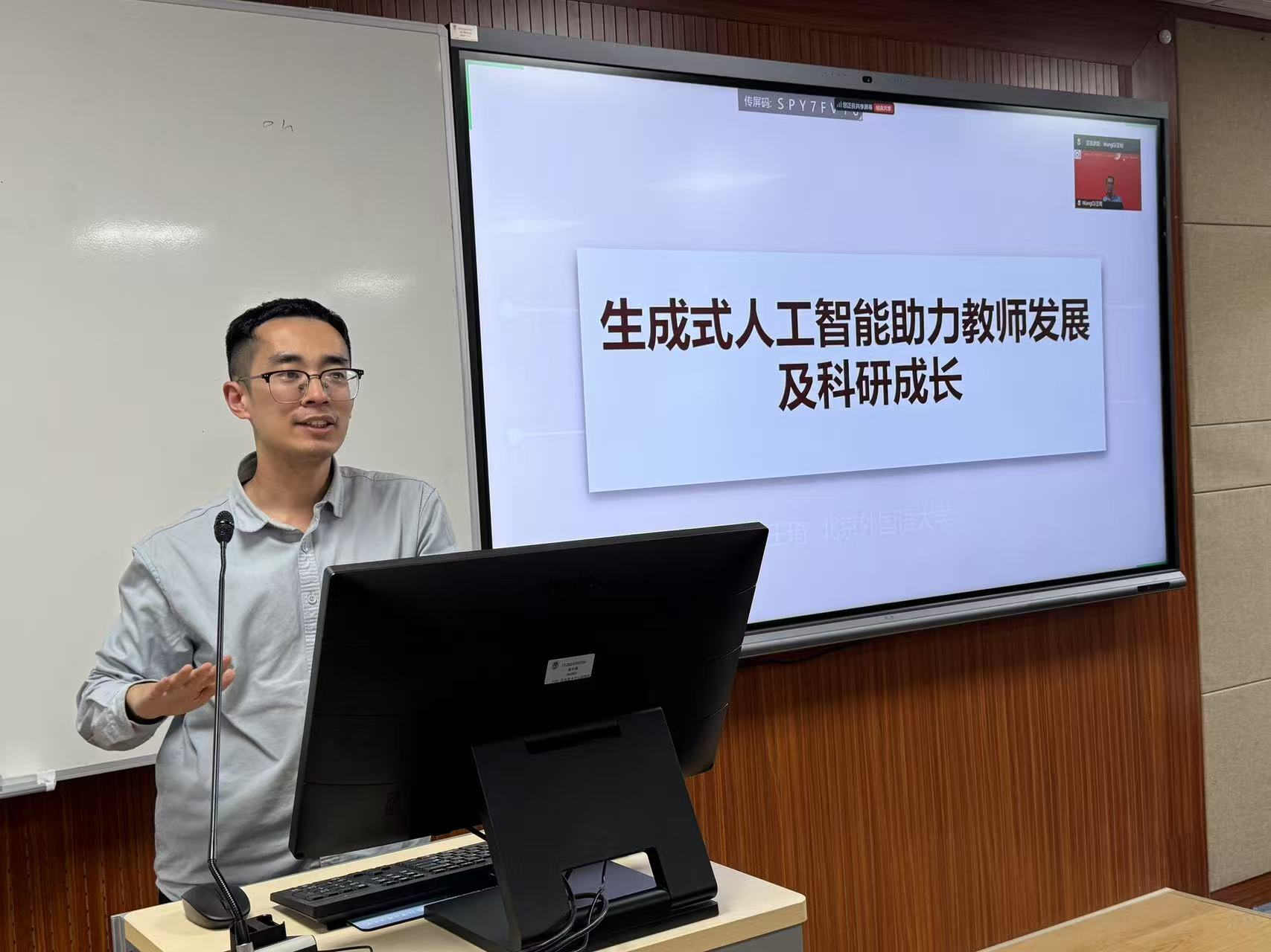 为深化“高质量党建赋能教育创新”实践,推动人工智能与外语教育融合发展,yl23455永利人工智能与人类语言重点实验室教师党支部书记、副教授王琦主讲的“生成式人工智能赋能教学与科研”双场专题讲座于2025年4月2日、9日成功举办。活动吸引来自全国20余所高校的240名教师线上线下参与,覆盖新疆大学、西藏大学、内蒙古工业大学、大理大学、青海师范大学、河北大学等院校外语教师,彰显跨区域学术联动效应。