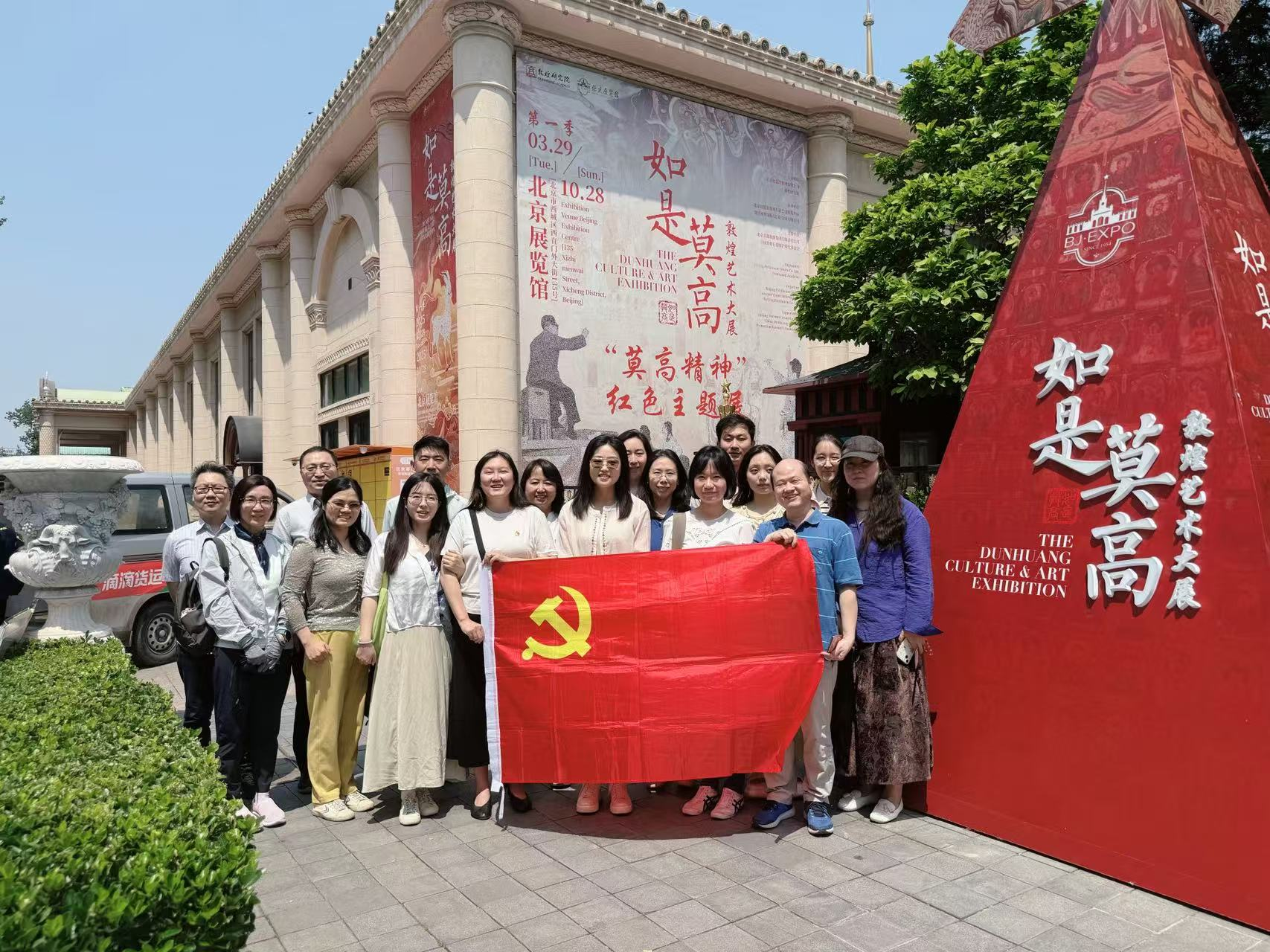 为深入贯彻落实习近平文化思想,丰富主题党日活动形式,强化党支部建设,推动中华优秀传统文化的传承与发展,5月28日下午,yl23455永利集团教师党支部与员工党支部联合开展主题党日活动,共同赴北京展览馆参观“莫高精神”红色主题展与“如是莫高”敦煌艺术大展,此次活动既是一次文化传播之旅,也是一场深刻的精神洗礼。