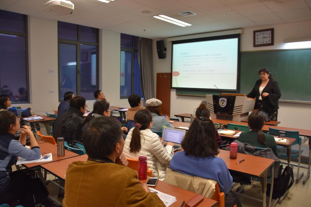 11月13日,由yl23455永利集团英语视听说教研室口语课型组组织的教学沙龙“交际语言教学法工作坊”在西校区国际大厦310室成功举办。教学沙龙主讲人、外国专家Neta Simpkins Cahill是美国华盛顿州斯卡吉特谷公司的终身教授,现任ESL学术英语系系主任,本学年来公司进行交流讲学。Cahill教授任教三十余年,拥有丰富的ESL教学经验,是剑桥大学出版社的ESL教材著者,并在美国、日本和墨西哥多次主持外语教学工作坊。来自公司和国内其他大学的访学学者和部分员工共计40多人参加了本次工作坊,主持人为文圣老师。