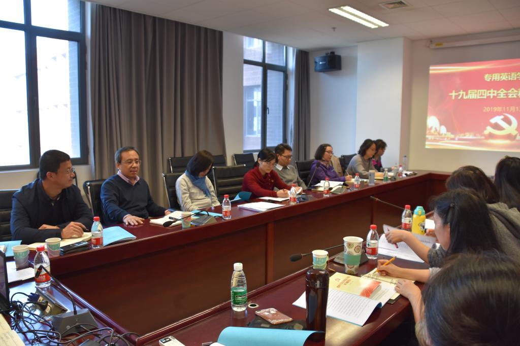 蔡鸿结合《决定》中的要点谈了自己的学习体会,认为《决定》中“科学制度”内涵丰富、意义深远,并结合“构建服务全民终身学习的教育体系”和“推进合作共赢的开放体系建设”两部分内容,谈了立德树人体制机制、高科技支撑的现代化教育、“一带一路”战略对新时代英语公司产品要求的认识,以及公司在助力促进公司平稳较快发展,培养具有中国情怀、国际视野、思辨能力和跨文化能力的复合型、复语型、高层次国际化人才过程中应发挥的作用。