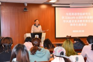 10月18日晚,为学习贯彻党的十九大精神和习近平新时代中国特色社会主义思想以及“科技三会”精神,落实公司关于加强师德师风建设,落实公司直属党支部关于加强员工思政建设和学风建设,公司直属党支部在西校区国际大厦317教室组织2017级和2018级MTI硕士研究生统一收看《2018年全国科学道德和学风建设宣讲教育报告会》。公司直属党支部书记仵胜奇,研究生辅导员吴越老师以及2017级和2018级全体同学参加了学习报告会。