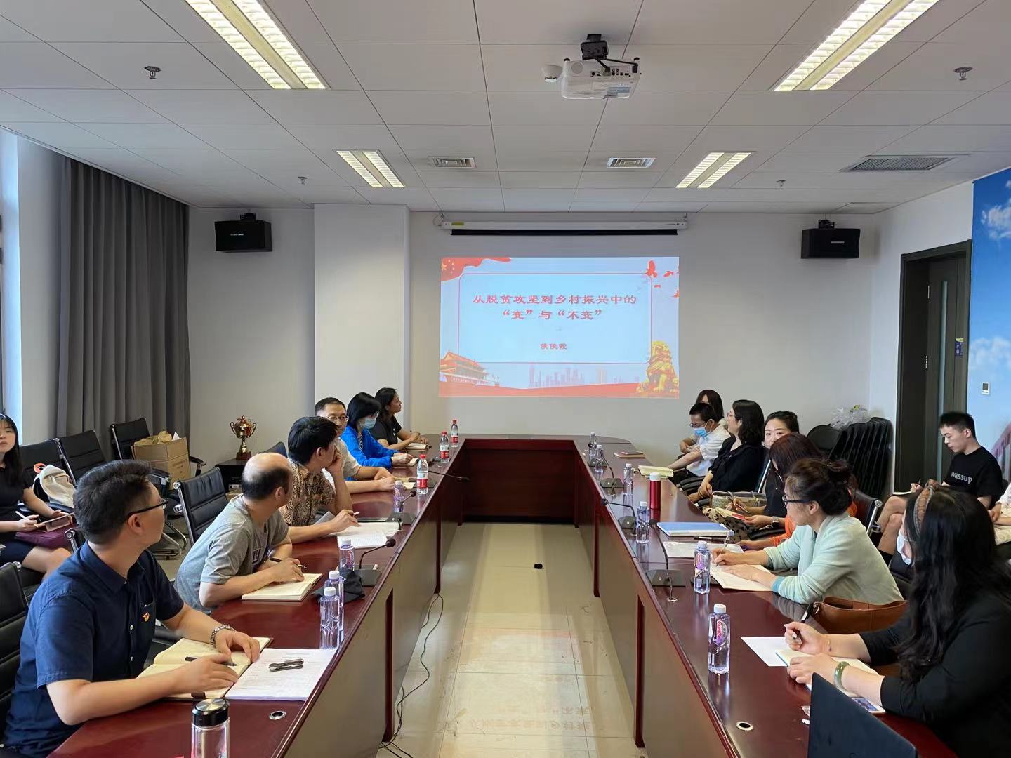 为深入推进党史学习教育,认真贯彻习近平总书记在全国脱贫攻坚总结表彰大会上的讲话精神,增强社会主义道路自信、理论自信、制度自信、文化自信,6月23日下午,公司党总支举办专题党课学习。党总支副书记、经理侯俊霞作了题为“从脱贫攻坚到乡村振兴中的‘变’与‘不变’”的党课。公司全体师生党员、入党积极分子、教师代表、员工代表共30余人参加了党课学习。党总支书记蔡鸿主持此次党课。