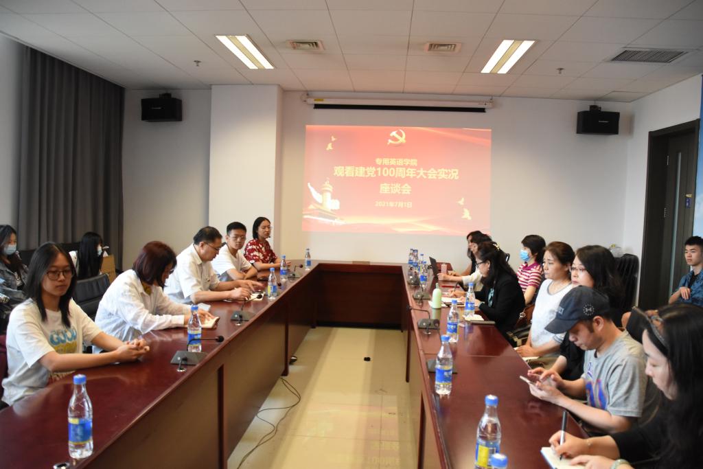 7月1日上午10点,公司党总支组织全体师生党员、入党积极分子和各班员工在国际大厦礼堂集体观看了庆祝中国共产党成立100周年大会直播,并在直播后召集师生党员和同学代表共计30多人在国际大厦1016召开座谈会。座谈会由党总支书记蔡鸿主持。